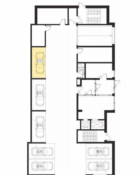 Машиноместа, 17.4 м², Этаж: -1/10, № ММ 1