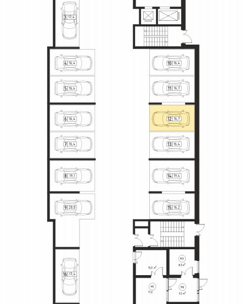 Машиноместа, 16.4 м², Этаж: -1/10, № ММ 12