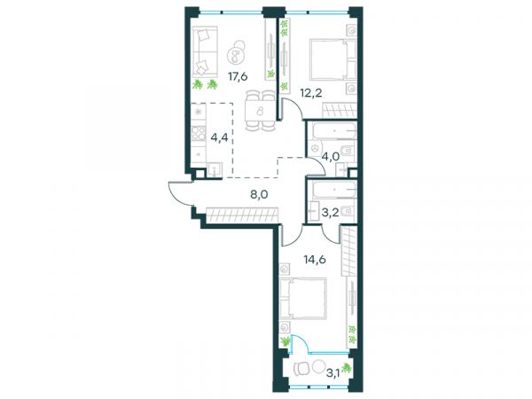 апартаменты, 65.6 м², Этаж: 20/20, № 84