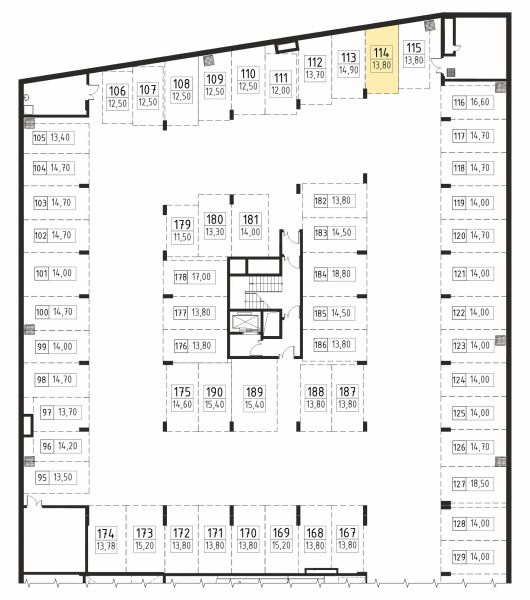 Машиноместа, 13.8 м², Этаж: -2/1, № 114