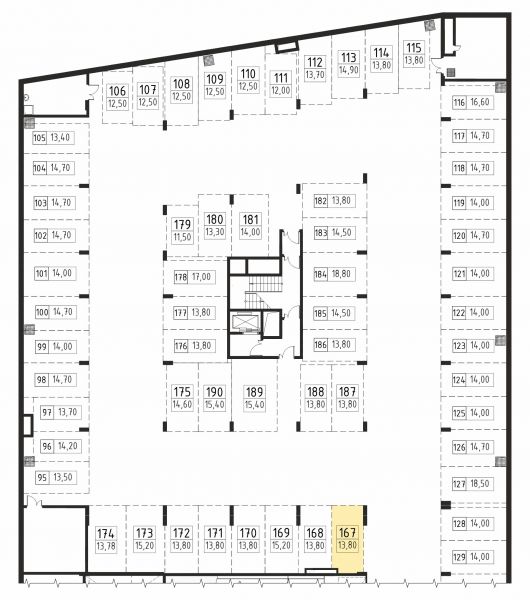 Машиноместа, 13.8 м², Этаж: -2/1, № 167