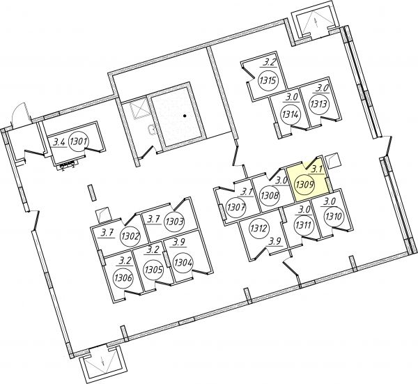 Кладовки, 3.1 м², Этаж: -1/-1, № 1309