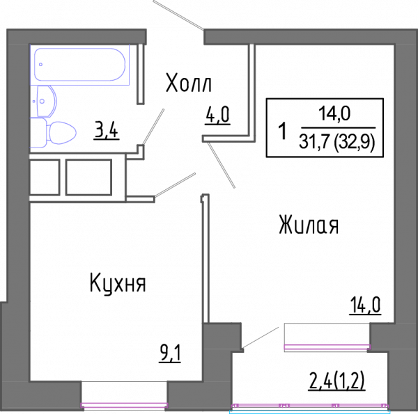 1 комната, 31.7 м², Этаж: 4/4, № 10178429