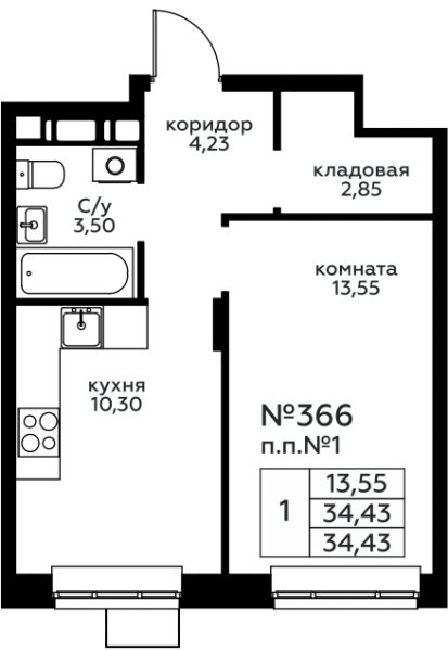 34.43 м²