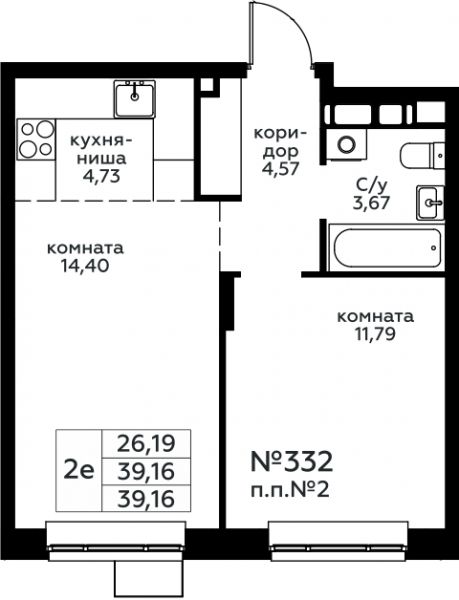 39.16 м²