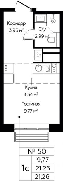 Студия, 21.26 м², Этаж: 6/22, № 50