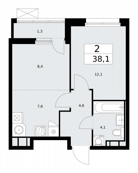 2 комнаты, 38.1 м², Этаж: 12/17, № 24К-25.5-753