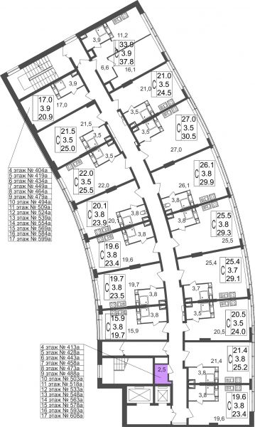 Кладовки, 2.5 м², Этаж: 16/17, № 593А