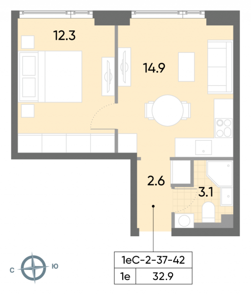 32.9 м²
